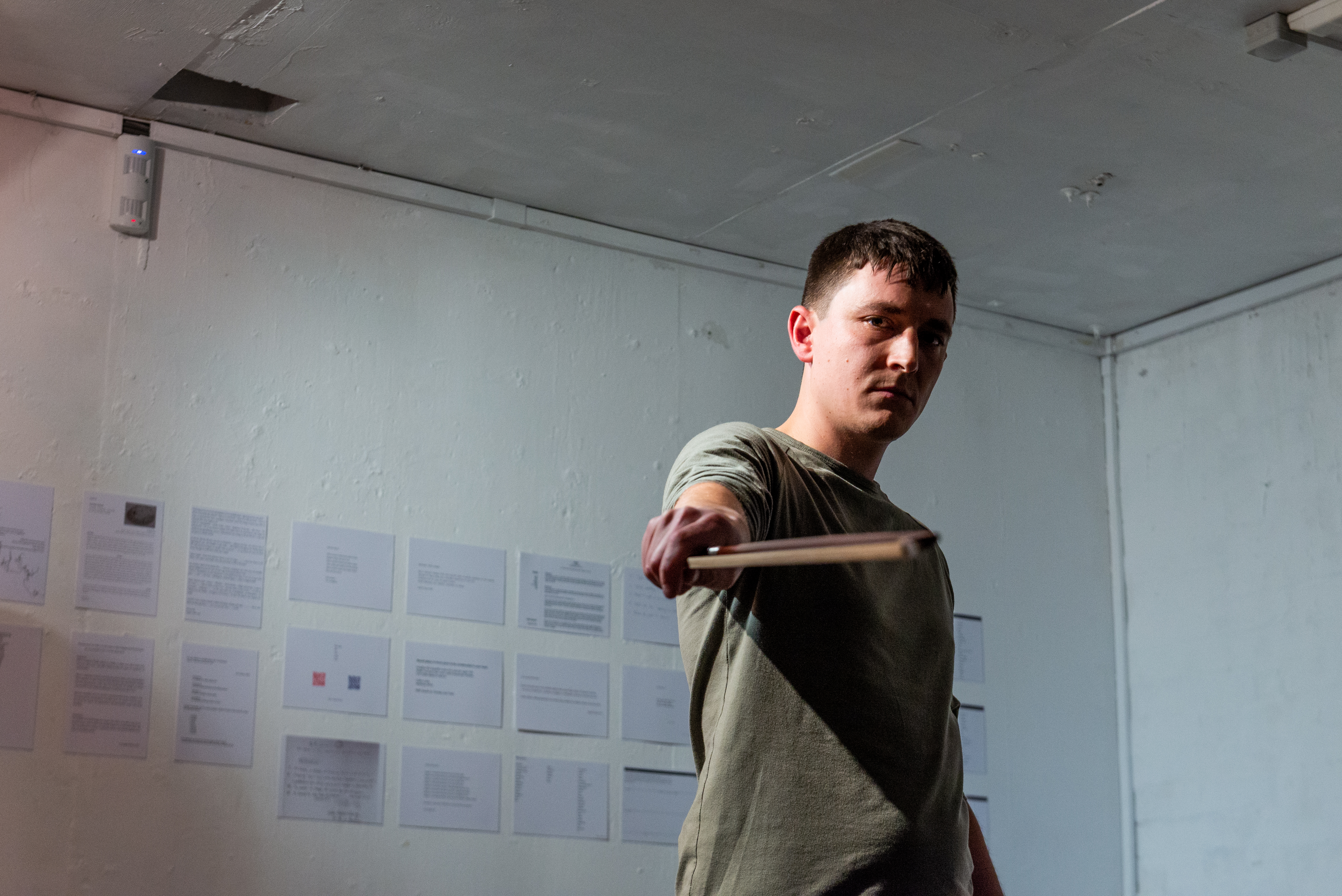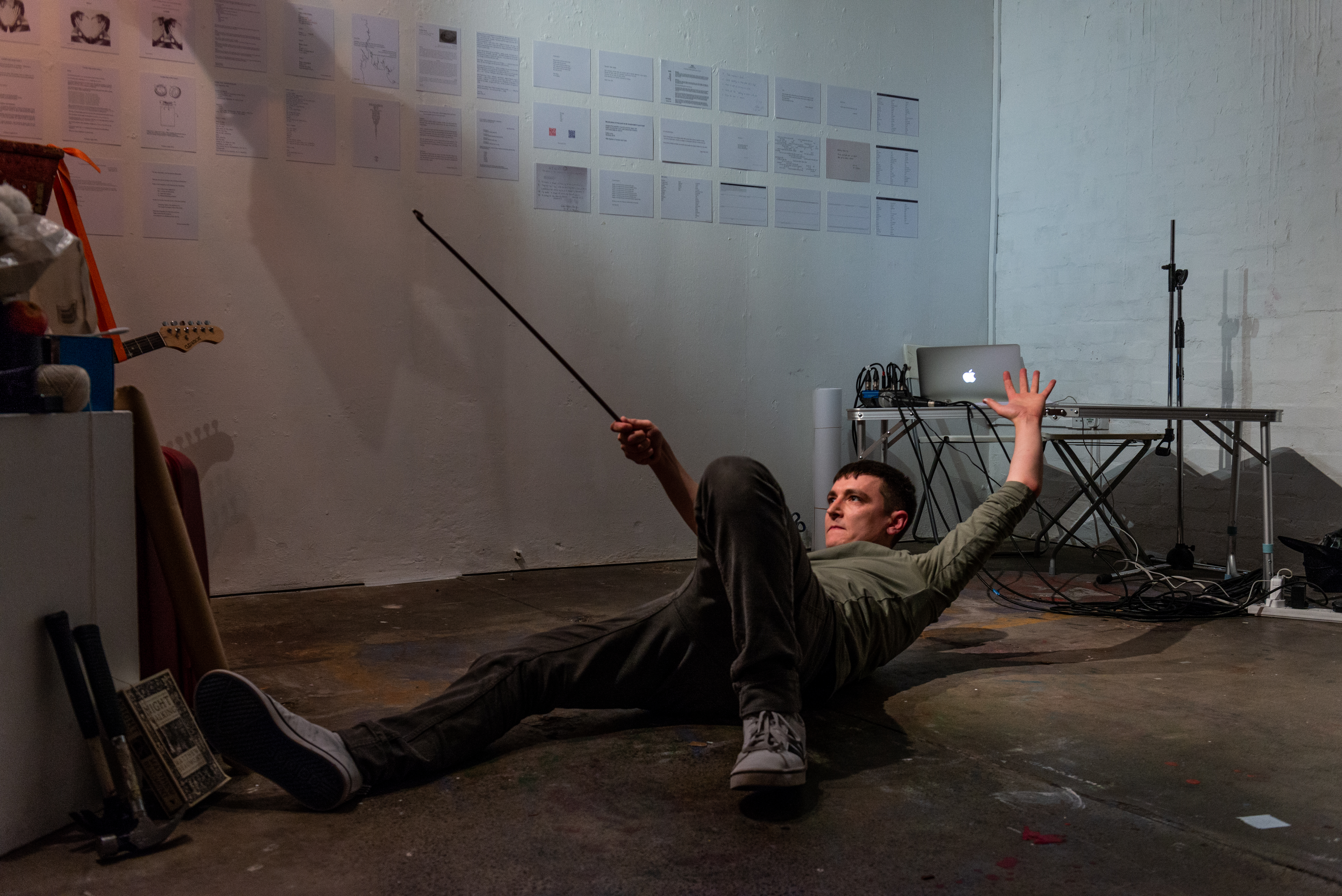 This piece displays an element of childlike make-believe, like playing at sword-fighting in front of a mirror in my childhood bedroom. It is not an overly skilful performance but more like a dedicated amateur than a professional sword-handler or martial artist. I perform the piece myself rather than getting a professional sword-handler because I am a musician who is implicitly expected to play an instrument. This situation is like a professional symphony orchestra recording an album of pop songs in which they play the right notes but are unable to embody the drive, swing or image of the pop artist. In such a situation they are playing at being a pop artist.