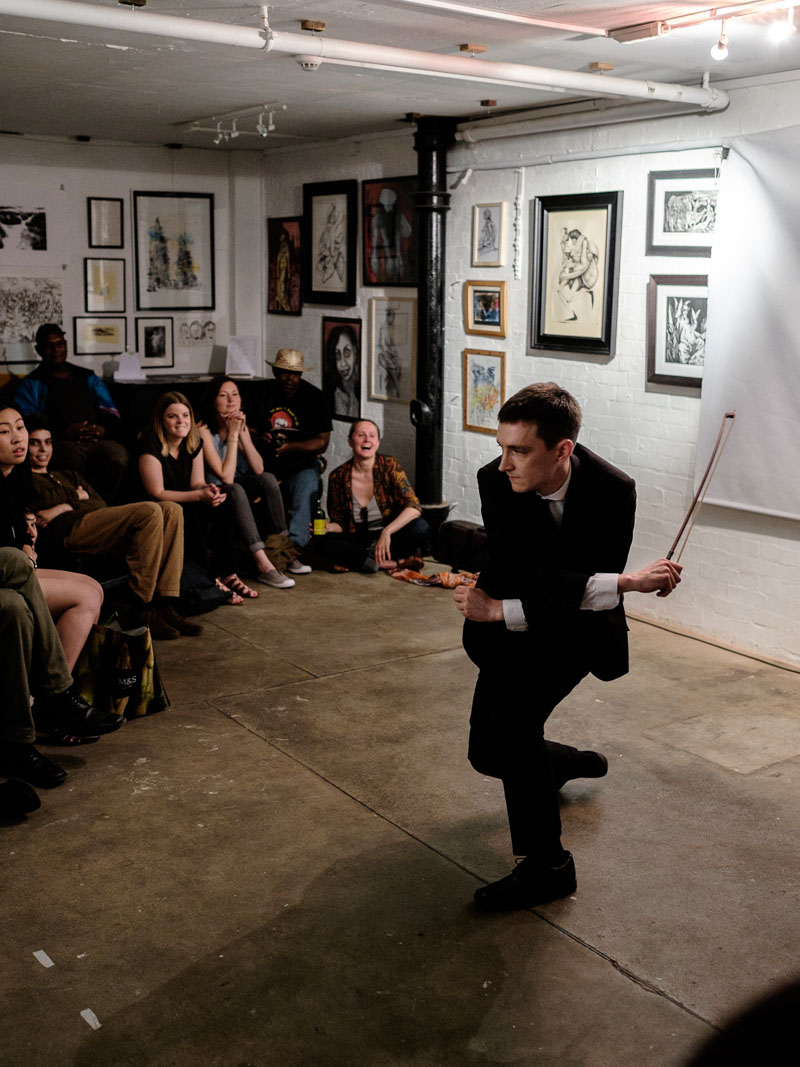 This piece is about extended instrumental playing techniques, a trope of mid- to late 20th-Century Western classical music, and their theatricality. I made this by using a violin bow as a sword to perform a disciplined sword-demonstration routine. My choreography was devised from clips of Uma Thurman in Kill Bill (2003) and Michelle Yeoh and Zhang Ziyi in Crouching Tiger, Hidden Dragon (2000).